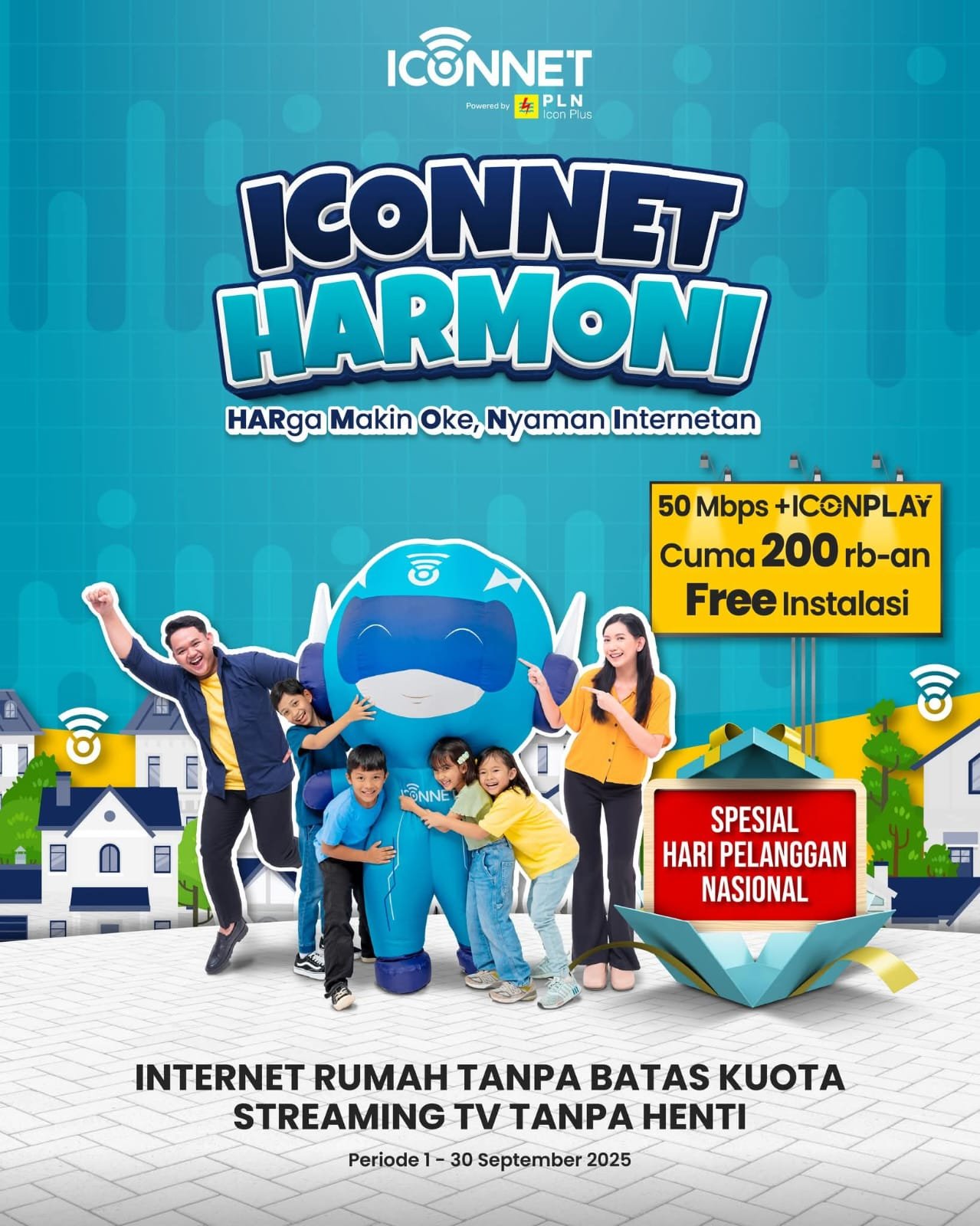 Dalam rangka memperingati Hari Pelanggan Nasional 2025, ICONNET menghadirkan program spesial bagi pelanggan baru. Melalui promo bertajuk ICONNET HARMONI (HARga Makin Oke Nyaman Internetan), pelanggan baru dapat menikmati layanan internet ICONNET tanpa dikenakan biaya instalasi. Promo ini berlaku selama periode 1–30 September 2025 di seluruh wilayah layanan ICONNET.